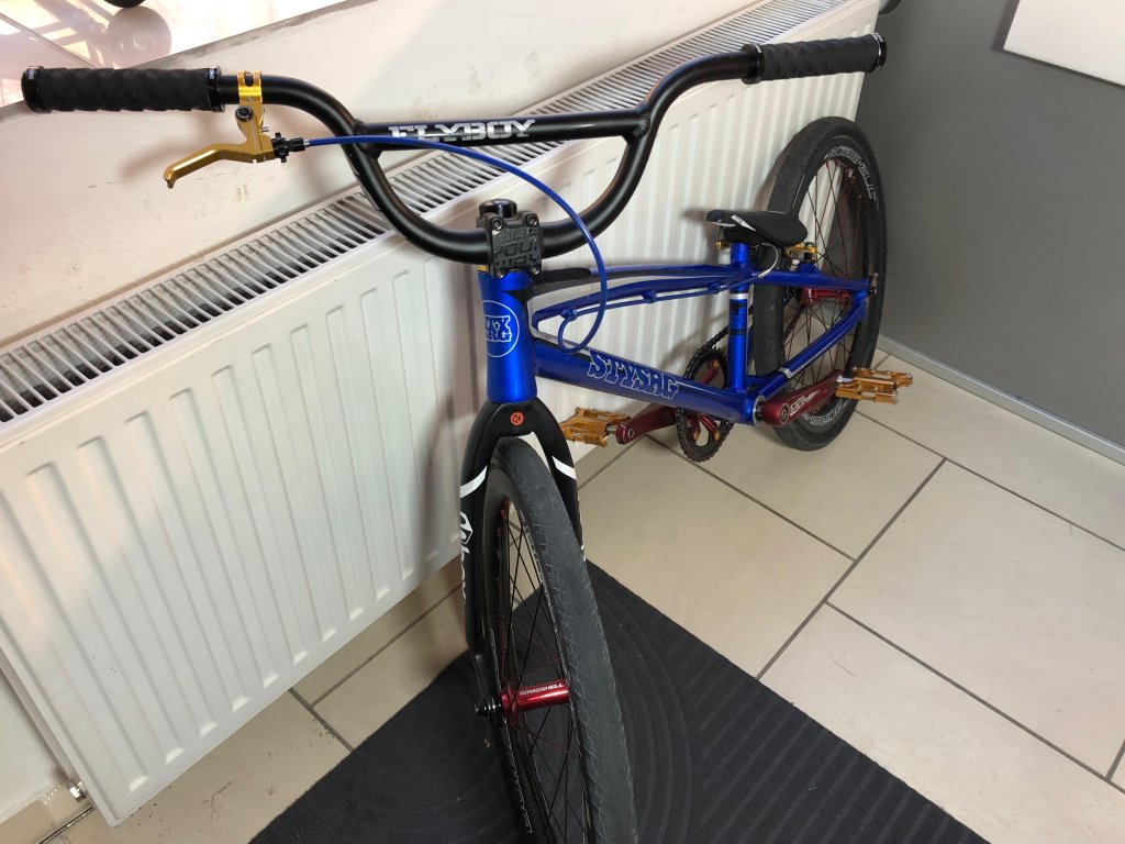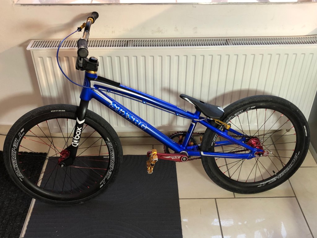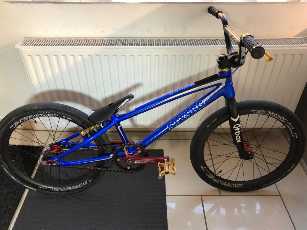Na kole jsou karbonová kola vč. nábojů Bombshell, brzda a páčka také Bombshell, karbonové sedlo Box, karbonová vidlice Box, kliky 155mm Insight, řídítka hliníkové Ice pr.31,8mm a 5,5" výška. Převod 39/16. Pneu jsou v rozměru 20x 1-3/8, VeeTire.