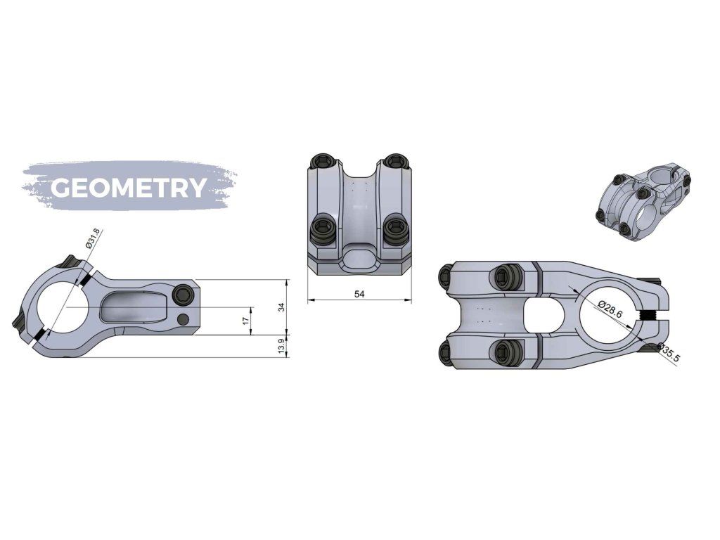 S šířkou objímky řídítek 54 mm poskytuje mnohem větší tuhost během jízdy. K dispozici je také v délce 35 mm, což z něj v současné době činí nejkratší představec PRO velikosti BMX Race na trhu. Představec 35 mm umožňuje nastavení pro různé délky horní trubky při změně rámu. K dispozici pouze s průměrem objímky řídítek 31,8 mm.