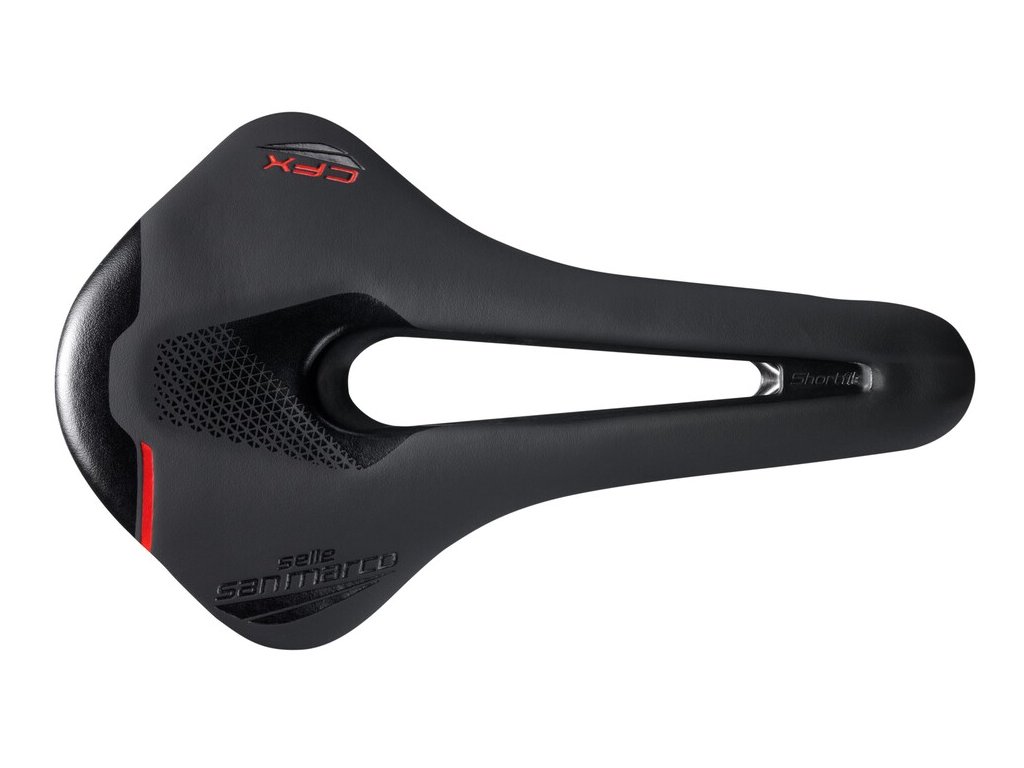 Selle San Marco SHORTFIT 2.0- je řešením zejména pro lidi s ohebnými bedry, normální až širší stavbou pánve a/nebo agresivnějším jízdním stylem, kdy zatěžujete perineální oblast tlakem a je potřeba jí ulevit. Toho se docílí zvětšeným otvorem a zároveň rozšířenou špičkou sedla, na které se lépe rozkládá tlak.Tento model je určen pro široké spektrum užití na silnici, dráze, ale i na MTB. Je to také model milovaný ženami!