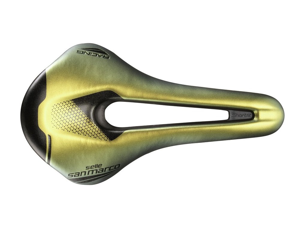 Selle San Marco SHORTFIT 2.0 - je řešením zejména pro lidi s ohebnými bedry, normální až širší stavbou pánve a/nebo agresivnějším jízdním stylem, kdy zatěžujete perineální oblast tlakem a je potřeba jí ulevit. Toho se docílí zvětšeným otvorem a zároveň rozšířenou špičkou sedla, na které se lépe rozkládá tlak. Tento model je určen pro široké spektrum užití na silnici, dráze, ale i na MTB. Je to také model milovaný ženami!RACING - závodní nejrozšířenější provedení s karbonem obohacenou skořepinou, tlumením Biofoam, povrchem Microfeel (umělá kůže) a ližinami ze slitiny Titanu a Siliconu XiSiLite. Je určeno především výkonnostním sportovcům s vyšším ročním nájezdem kilomterů jako trvanlivá lehčí varianta. Zároveň je to také přorozeně nejpohodlnější závodní varianta v nabídce díky práci titanových ližin.