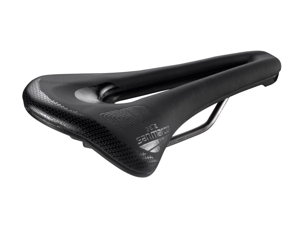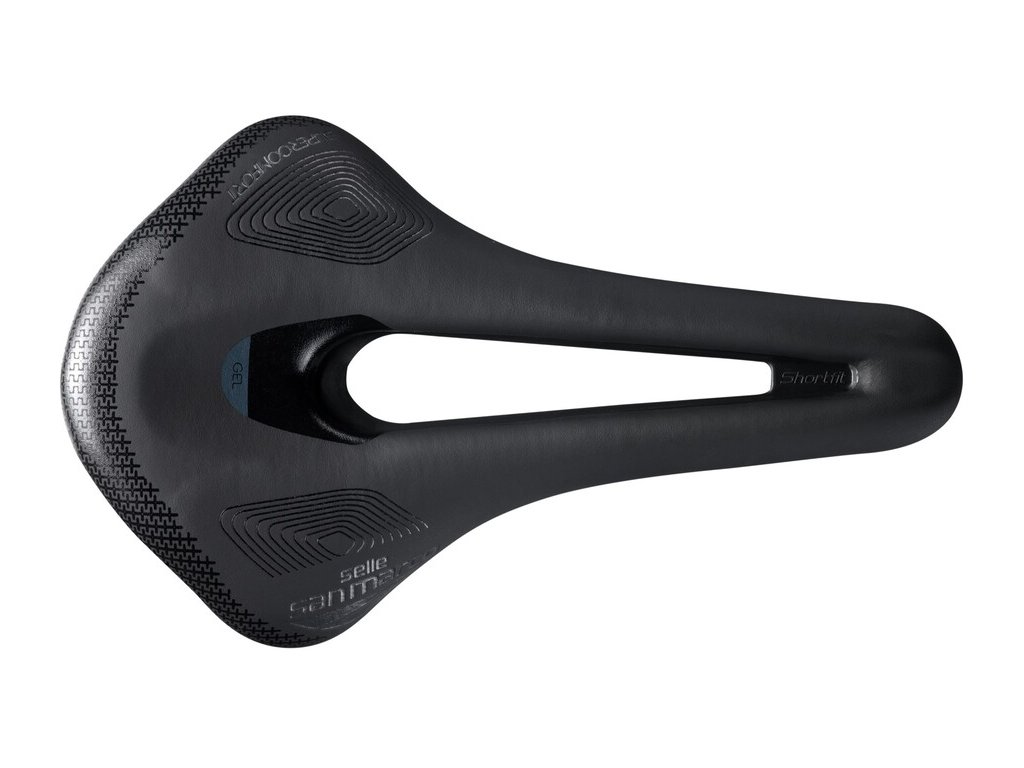 Selle San Marco SHORTFIT 2.0 - je řešením zejména pro lidi s ohebnými bedry, normální až širší stavbou pánve a/nebo agresivnějším jízdním stylem, kdy zatěžujete perineální oblast tlakem a je potřeba jí ulevit. Toho se docílí zvětšeným otvorem a zároveň rozšířenou špičkou sedla, na které se lépe rozkládá tlak. Tento model je určen pro široké spektrum užití na silnici, dráze, ale i na MTB. Je to také model milovaný ženami!SUPERCOMFORT RACING - (úroveň Racing, dodatečné polstrování gelem). Tato úprava přidává ke standardnímu sedlu větší pohodlí. Ve studiích prováděných na jezdcích různého zaměření a fyzické zdatnosti se ukazuje, že větší míra pohodlí (zvýšené polstrování) může mít velmi pozitivní dopad ve dvou případech. Tím prvním jsou kratší tréninky méně zdatných cyklistů, kteří nejsou na sedlo zvyklí (cca do dvou hodin) a tím druhým je naopak ultramaratonské pojetí cyklistiky s výkony dlouhým 6-8 hodin a více. Při standardním cyklistickém výkonu zdatného jedince (3-5 hodin v sedle) se ukazuje jako výhodnější kvalitní vložka v kalhotech v kombinaci se závodněji pojatým posltrováním sedla. Toto provedení také častěji volí ženy - zejména Ty příležitostně jezdící.